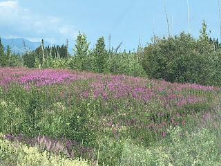 We stopped in Tok at the Three Bears Grocery for dinner supplies, a rotisserie chicken and salad makings. Drove to our home for the evening, the Fox n Fireweed Bed and Breakfast. What a charming place. We have the Bear's Den Suite. It's the second den we've lived in on this trip. The other was the Wolf Den. This one is bigger and quieter and there are lots of treats in the fridge for breakfast.